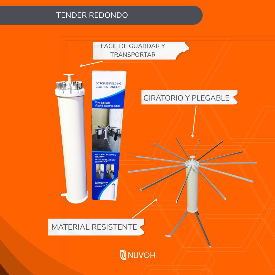 Descubrí una forma inteligente y eficiente de secar tu ropa con este innovador secador colgante de diseño radial. Su estructura compacta con múltiples brazos, en tonos blancos y grises, está pensada para aprovechar el espacio aéreo, ideal para colgarlo en cualquier ambiente y secar prendas pequeñas o delicadas de forma organizada.